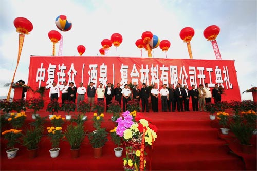甘肅省委副書記、省長徐守盛,甘肅省委常委、常務副省長馮健身,中國建材集團董事局主席宋志平,酒泉市委書記、市人大常委會主任李建華,酒泉市人民政府市長陳春明,中國復合材料集團公司董事長、總經(jīng)理張定金,中國建材報社社長、總編輯陳才來,中國建材雜志社長秦春雨、中國建材股份公司副總工解小平等出席儀式。中國復合材料集團公司副總經(jīng)理、連云港中復連眾集團公司董事長任桂芳主持儀式。