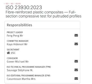 近日,國(guó)際標(biāo)準(zhǔn)化組織ISO正式頒布了ISO 23930:2023 《纖維增強(qiáng)塑料復(fù)合材料——拉擠型材全截面壓縮試驗(yàn)方法》(Fibre-reinforced plastic composites — Full-section compressive test for pultruded profiles),這部標(biāo)準(zhǔn)由清華大學(xué)土木工程系馮鵬教授提案并擔(dān)任項(xiàng)目負(fù)責(zé)人(Project Leader),是復(fù)合材料技術(shù)領(lǐng)域首項(xiàng)由我國(guó)提案并主導(dǎo)制訂的國(guó)際標(biāo)準(zhǔn)項(xiàng)目。