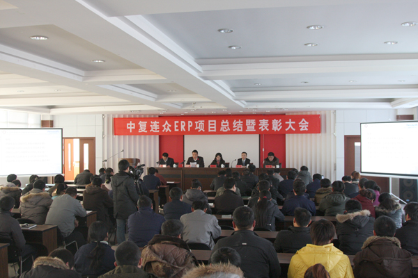 12月24日,中復連眾ERP項目總結和表彰大會在五樓會議室舉行,連云港市經(jīng)信委科技處處長馮燕琴、中復連眾總經(jīng)理喬光輝、東軟公司總經(jīng)理章越、慧德公司總經(jīng)理陸韌鋼出席了會議,會議由中復連眾副總工程師田超凱主持。