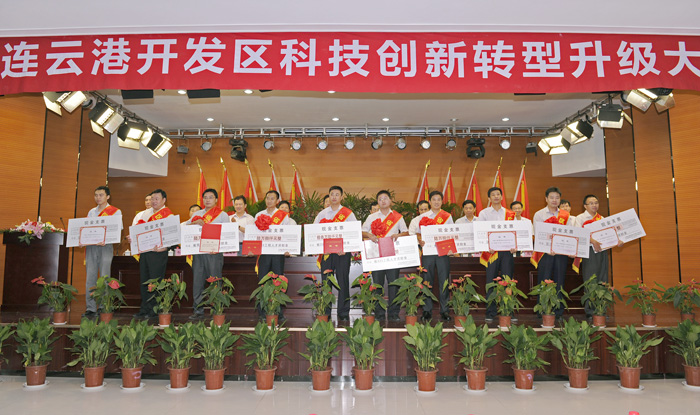 7月27日,市開發(fā)區(qū)科技創(chuàng)新轉(zhuǎn)型升級大會隆重召開,會議對2011年度開發(fā)區(qū)企業(yè)十大科技創(chuàng)新成果、優(yōu)秀科技創(chuàng)新平臺、專利擁有量十強(qiáng)企業(yè)、實(shí)施品牌戰(zhàn)略十佳企業(yè)、優(yōu)秀商標(biāo)、高層次人才進(jìn)行了表彰。中復(fù)連眾包攬了除優(yōu)秀商標(biāo)之外的其他5項大獎。公司副總經(jīng)理劉衛(wèi)生出席會議并上臺領(lǐng)獎。