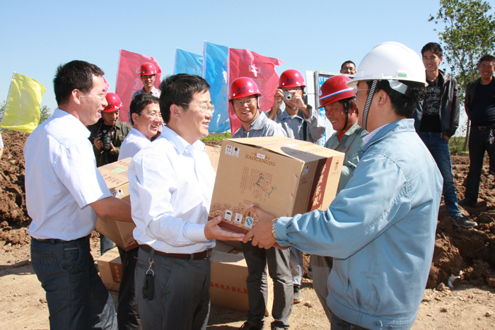 在貫通儀式上,孫中華主任對中復(fù)新水源的工作表示肯定,并希望中復(fù)新水源再接再厲,抓緊做好管道施工沿線的土地恢復(fù)和道路修復(fù),為老百姓交上一份滿意的答卷,繼續(xù)高度重視安全生產(chǎn),狠抓工程質(zhì)量,按期完成工程的各項(xiàng)節(jié)點(diǎn)任務(wù),為徐圩新區(qū)建設(shè)添磚加瓦。在雙節(jié)來臨之際,孫主任向在場的建設(shè)單位和施工單位的同志們表示節(jié)日的問候,并送上慰問品。