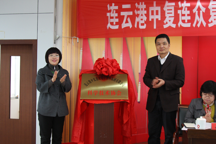 程曉紅和喬光輝為中復(fù)連眾科技協(xié)會(huì)銅牌揭牌。