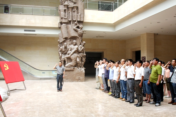 組織50名黨員代表參觀連云港市革命紀念館參觀和博物館,緬懷革命先烈,接受愛國主義教育。黨員們重點參觀了“連云港市革命斗爭史”展廳,參觀從五四運動時期至新中國成立時期的珍貴歷史圖片和革命文物,全面了解了連云港的人民群眾在共產黨的領導下抵御外侵、保家衛(wèi)國的光輝歷史。在鮮艷的黨旗前,公司黨委委員、副總經理王彤兵同志帶領新黨員宣誓,對黨忠誠,積極工作,為共產主義事業(yè)奮斗終身。老黨員們也紛紛舉起拳頭,重溫入黨誓詞。