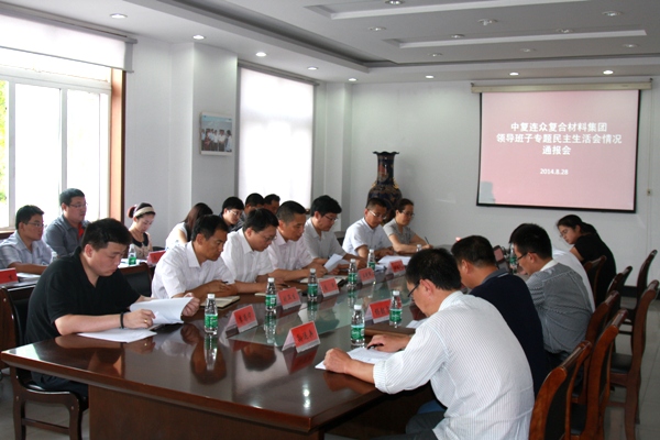 2014年8月28日,中復連眾召開了黨的群眾路線教育實踐活動領導班子專題民主生活會情況通報會,中國復材集團副總經(jīng)理、中復連眾黨委書記、總經(jīng)理喬光輝代表公司黨委通報領導班子專題民主生活會有關情況,中國復材集團督導組副組長、黨委辦公室主任傅義紅出席會議,會議由中復連眾黨委副書記、副總經(jīng)理王彤兵主持。公司領導班子、中層以上黨員干部和職工代表共29人參加會議。