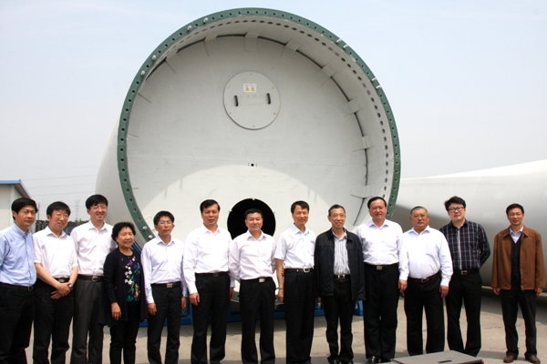 周長(zhǎng)益司長(zhǎng)一行,首先參觀(guān)了中復(fù)連眾連云港葉片工廠(chǎng),在LZ56.8-2.0MW米葉片生產(chǎn)線(xiàn),周長(zhǎng)益司長(zhǎng)一行詳細(xì)聽(tīng)取了中復(fù)連眾副總經(jīng)理梁穎對(duì)葉片生產(chǎn)情況做的匯報(bào),隨后周司長(zhǎng)一行到葉片檢測(cè)中心觀(guān)看了葉片靜力試驗(yàn),并參觀(guān)了國(guó)內(nèi)首只LZ68-6.0MW葉片。