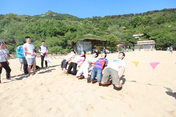 藍天、白云、沙灘,秋高氣爽,海景宜人。8月27日,中復連眾迎新活動在美麗的蘇馬灣海濱浴場舉行,34名新老員工在金色的沙灘上進行了袋鼠跳看圖猜成語、團隊障礙接力賽和下腰挑戰(zhàn)賽三個競技比賽項目,整個活動現場氣氛活躍,笑聲連連。