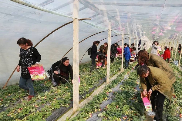3月8日下午,百余名女職工來到東??h黃川鎮(zhèn),走進(jìn)溫室大棚采摘草莓,草莓園大棚內(nèi),翠綠的草莓葉、鮮紅誘人的草莓,女職工們禁不住這滿園春色的誘惑,立刻“忙碌”了起來,大家一邊采摘、一邊品嘗、一邊拍照,盡情地享受采摘的樂趣。