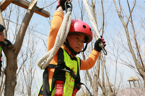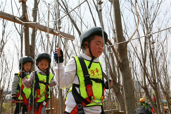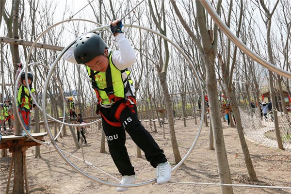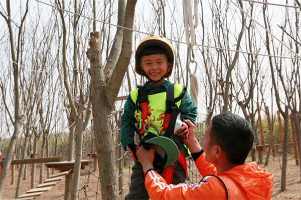 活動(dòng)當(dāng)天,所有參加人員身穿統(tǒng)一服裝來(lái)到葉片事業(yè)部連云港工廠,葉片事業(yè)部的領(lǐng)導(dǎo)們?yōu)樾∨笥杨C發(fā)了紀(jì)念品以示歡迎。他們先后參觀了公司的葉片實(shí)驗(yàn)臺(tái)、16#生產(chǎn)車間及多功能展廳。孩子們看到展廳里隨著音視頻轉(zhuǎn)動(dòng)的葉片,一個(gè)個(gè)興奮地爭(zhēng)先合影。一個(gè)小朋友看到多維葉片模型直呼是爸爸做的,逗得旁人一陣笑。隨后,所有人員乘車來(lái)到拓展基地開展戶外親子活動(dòng),活動(dòng)共準(zhǔn)備了3個(gè)節(jié)目:叢林探險(xiǎn)、互動(dòng)小游戲、動(dòng)物表演秀。叢林探險(xiǎn)的每個(gè)環(huán)節(jié)都充滿挑戰(zhàn),小朋友們需要在父母的支持與鼓勵(lì)下逐級(jí)過關(guān),小游戲環(huán)節(jié)則需要孩子們獨(dú)立完成,汗水與歡笑在孩子們紅撲撲地小臉上洋溢著,最終每個(gè)孩子都獲得了工作人員精心準(zhǔn)備的獎(jiǎng)品,個(gè)個(gè)滿載而歸。一位來(lái)自一線的員工說(shuō)道,自己平時(shí)工作忙,很少有機(jī)會(huì)陪孩子玩,在這次親子活動(dòng)中,可以和孩子一起互動(dòng)玩游戲、看表演,感覺特別幸福。