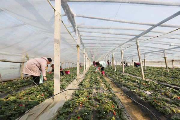 摘草莓一直深得人心,3月7日下午,三個(gè)廠區(qū)的女員工乘車來(lái)到東海縣黃川草莓采摘園。伴著愉悅的心情、吹著和煦的春風(fēng),眾人迫不及待地走進(jìn)草莓大棚,將一個(gè)個(gè)色澤紅潤(rùn),讓人垂涎欲滴的草莓摘入盒中。