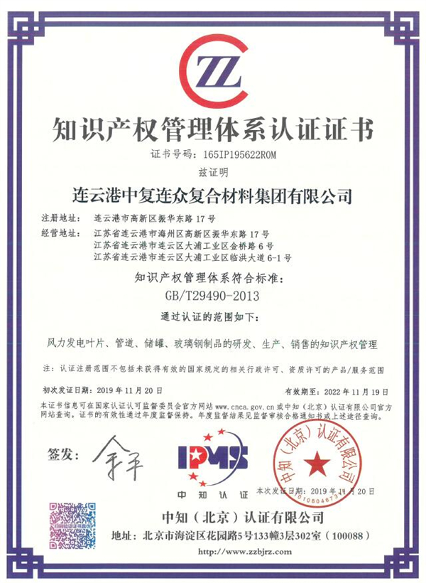 11月21日,中復(fù)連眾獲得由中知(北京)認(rèn)證有限公司頒發(fā)的《知識(shí)產(chǎn)權(quán)管理體系認(rèn)證證書》。該證書的獲得,標(biāo)志著中復(fù)連眾知識(shí)產(chǎn)權(quán)管理符合《企業(yè)知識(shí)產(chǎn)權(quán)管理規(guī)范》標(biāo)準(zhǔn)要求,知識(shí)產(chǎn)權(quán)管理水平邁上新臺(tái)階。