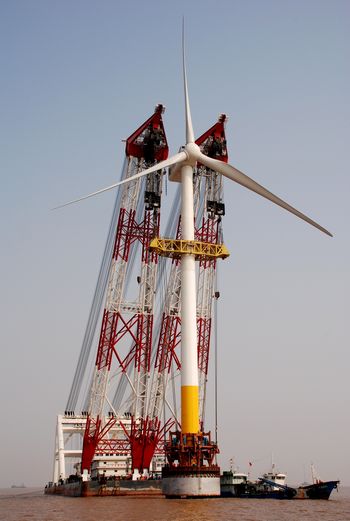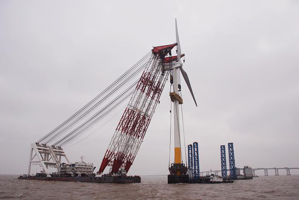 2010年2月27日15時28分,隨著最后一臺風(fēng)機與海上基礎(chǔ)承臺對接,我國首座、也是亞洲首座大型海上風(fēng)電場一一東海大橋海上風(fēng)電場全部34臺風(fēng)機安裝取得圓滿成功。這標(biāo)志看我國海上風(fēng)力發(fā)電產(chǎn)業(yè)穩(wěn)穩(wěn)邁出了第一步并進入了實戰(zhàn)階段。